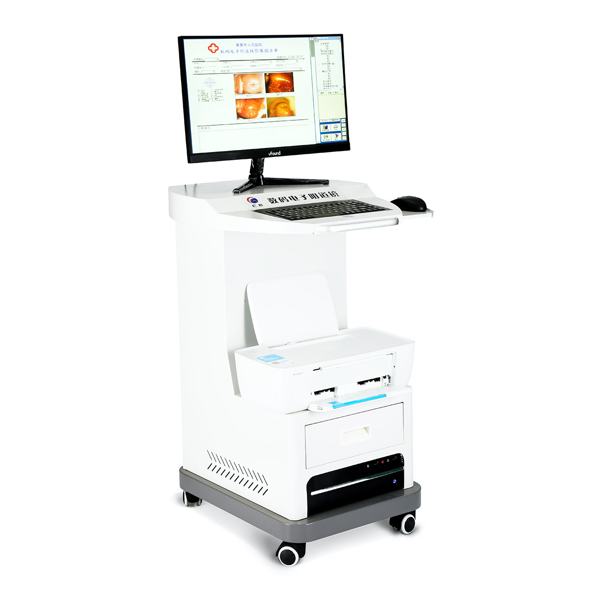 內置多圈環形高亮LED白色光源機構;搭配三級濾光功能、醋酸反應計時功能、品牌電腦配置、直立式支架可自由升降實時動態的圖像處理功能:放大、縮小圖像、凍結、采集、錄像回放、自動聚焦、存儲、再現、圖像處理、多光源切換等。